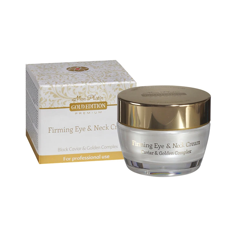 Firming Eye & Neck Cream is designed to firm the delicate skin on the area around the eyes and the neck. Leaves skin looking fresher and smoother and helps prevents the formation of wrinkles. Contains innovative capsules that dissolve on application, releasing Vitamins A and E, as well as Gold Complex capsules, consisting of mp gold 2035, a new development exclusive to the Mon Platin laboratories, containing hyaluronic acid, powdered pearls, 24K colloidal gold, quinoa protein and pomegranate.