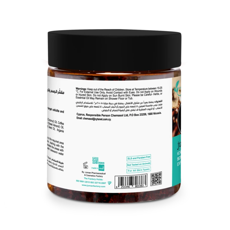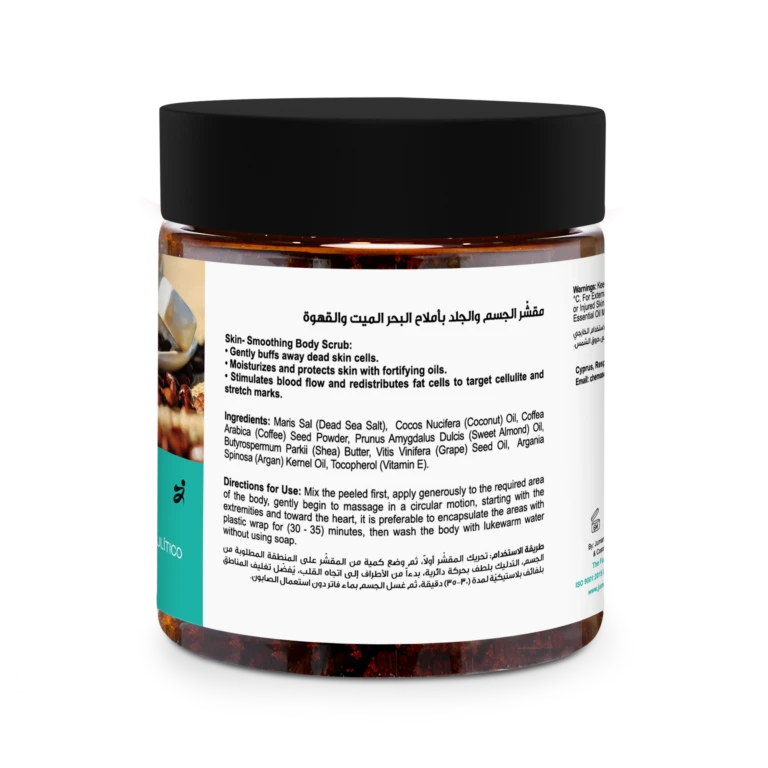 The Arabica Coffee Scrub is a fantastic body scrub that can help reduce the appearance of cellulite, varicose veins, and stretch marks. Packed with antioxidants, this scrub can stimulate blood flow, exfoliate, and hydrate the skin simultaneously. It is particularly effective in reducing cellulite due to its rich concentration of active ingredients, such as Coffee Seed Powder, which contains essential fatty acids, sterols, and vitamin E. These components make it a potent antioxidant that offers protection against skin damage and helps reduce the appearance of cellulite, stretch marks, and varicose veins. Additionally, the Dead Sea Salt in the scrub enhances skin hydration. At the same time, Coconut Oil reduces inflammation and possesses antimicrobial properties that can help treat acne and protect the skin from harmful bacteria. Together, these properties highlight the scrub’s effectiveness in addressing cellulite concerns.