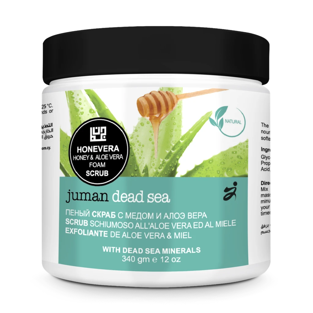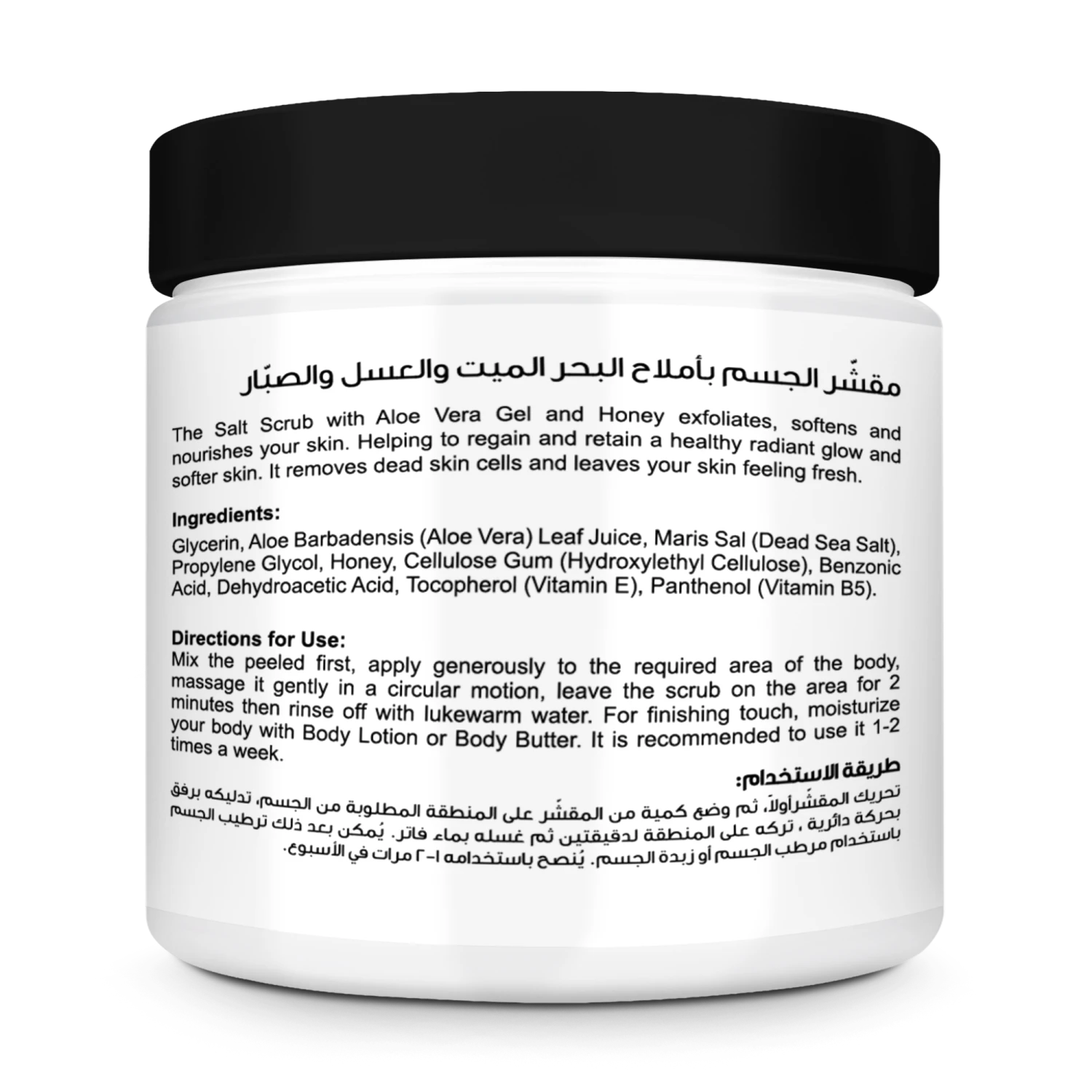 This body scrub based on mineral-rich dead sea salt features a beautiful combination of natural active ingredients to provide your skin with the ultimate care and nourishment. Harnessing the powerful properties of honey, this scrub provides a gentle yet effective solution for keeping your skin radiant and healthy. Honey, known for its anti-microbial and anti-inflammatory properties, removes dead cells and tissues without causing discomfort while simultaneously creating a healing environment for skin inflammations. As a result, it facilitates the growth of new skin cells, leaving your skin feeling rejuvenated and revitalised.