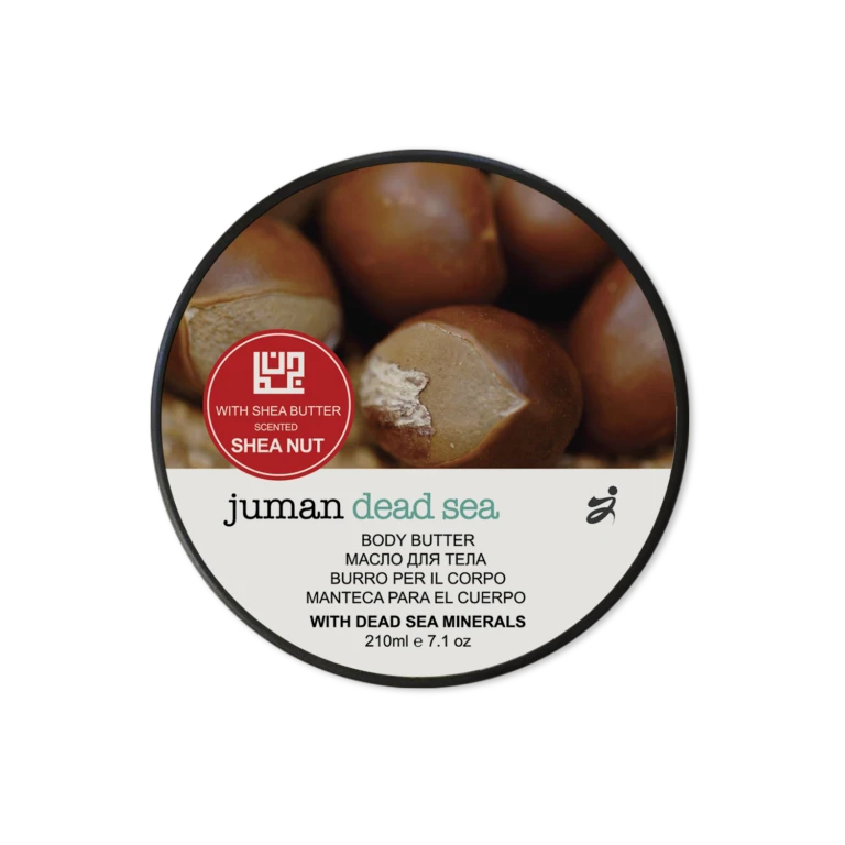Juman Shea Butter is an exquisitely hydrating and nourishing body moisturiser meticulously crafted from the finest cocoa and shea butter, enriched with potent herbal extracts and health-enhancing minerals sourced from the Dead Sea. This luxurious formula delivers deep, long-lasting hydration, leaving your skin with a natural, healthy radiance. The delightful and gentle scent of shea nut makes your body feel fresh and delicately fragrant.