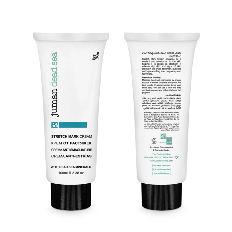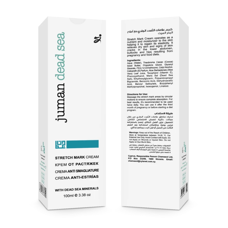 Juman Stretch Mark Cream with Dead Sea Minerals is a fragrance-free skincare product that assists the skin in recovering from a wide range of tissue damage while also visibly reducing the appearance of scars and stretch marks. Harnessing the power of natural ingredients, this cream effectively restores the skin’s elasticity.