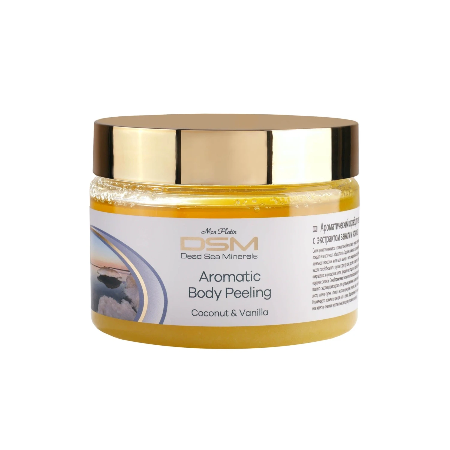 Indulge in a luxurious home spa experience with DSM Aromatic Dead Sea Salt Body Peeling Coconut & Vanilla. This delicately scented body scrub is carefully crafted with dead sea salts and natural aroma oils to gently exfoliate dead skin cells from the surface of your skin, leaving it feeling fresh and velvety.